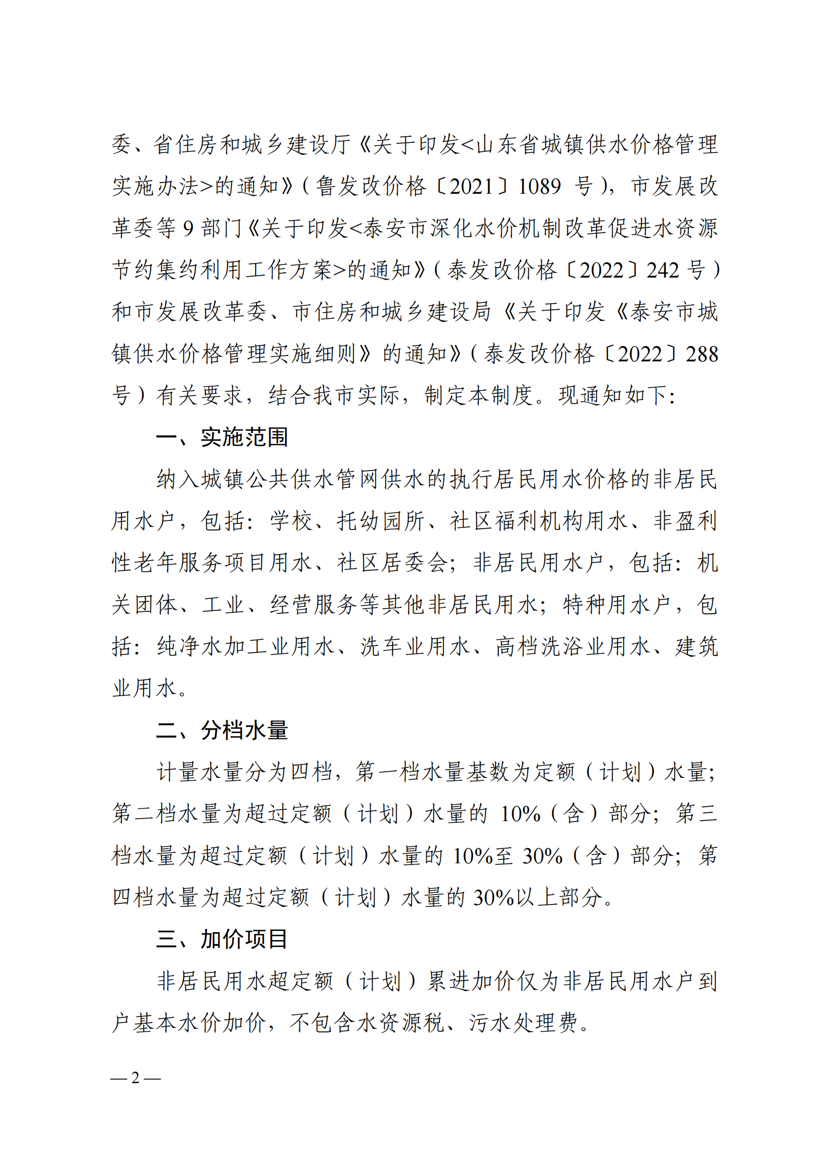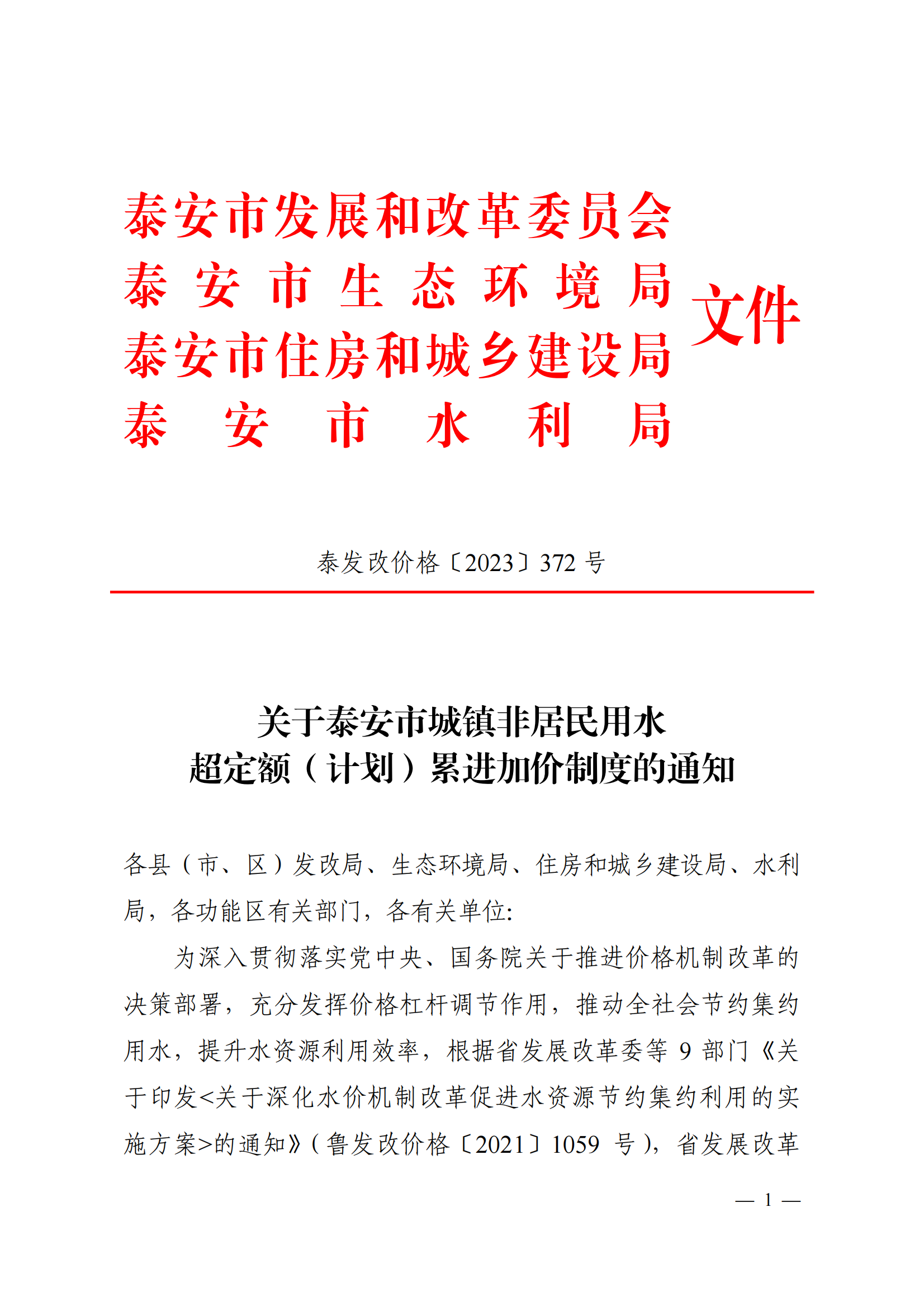 關(guān)于泰安市城鎮(zhèn)非居民用水超定額(計劃)累進(jìn)加價制度的通知