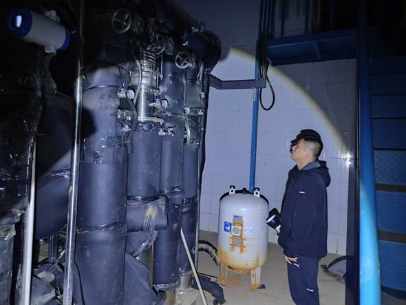 ? ?? ?? 抵達現(xiàn)場后,工作人員發(fā)現(xiàn)設(shè)備運行異常,當(dāng)即嘗試重啟加壓設(shè)備進行補水,但經(jīng)過一段時間的觀察,壓力并未恢復(fù)正常。經(jīng)過進一步排查,工作人員懷疑是增壓站出水管道漏水導(dǎo)致,迅速將現(xiàn)場情況報告客服調(diào)度中心,管網(wǎng)管理中心工作人員趕赴現(xiàn)場進行支援。