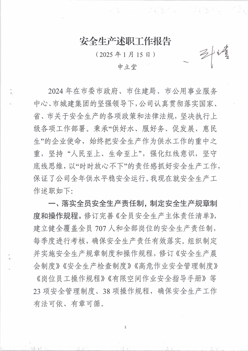 您當前位置》供水要聞》安全生產(chǎn)述職工作報告